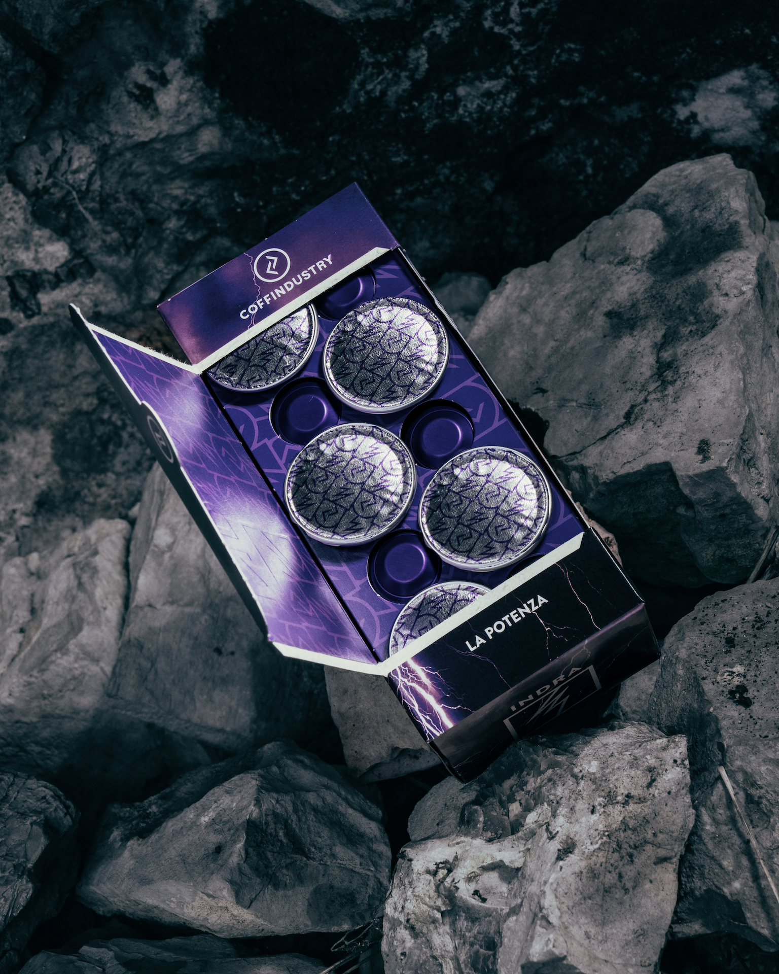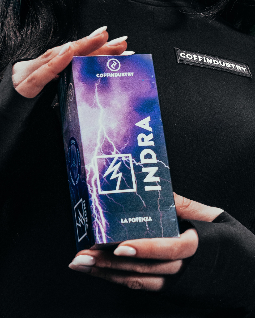 Indra è un caffè audace e potente, che sprigiona note decise di cioccolato grezzo e morbidi sentori di torroncino e nocciole, creando alternanze improvvise che sorprendono il palato.